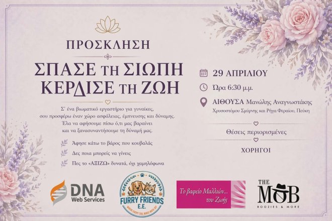 • Το εργαστήριο θα ολοκληρωθεί με μια πράξη συλλογικής ενδυνάμωσης, στέλνοντας το μήνυμα ότι η συναισθηματική ακεραιότητα είναι δικαίωμα και η ανάκτησή της είναι μια πράξη θάρρους.