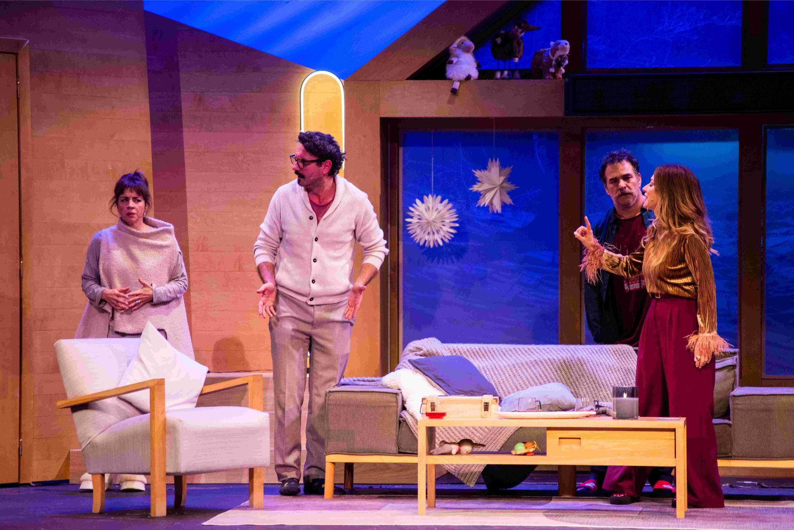 Με φόντο την χιονισμένη χριστουγεννιάτικη Λαπωνία, δύο ζευγάρια, διαφωνούν, συμφωνούν, μαλώνουν, γελούν, κλαίνε και μονοιάζουν.