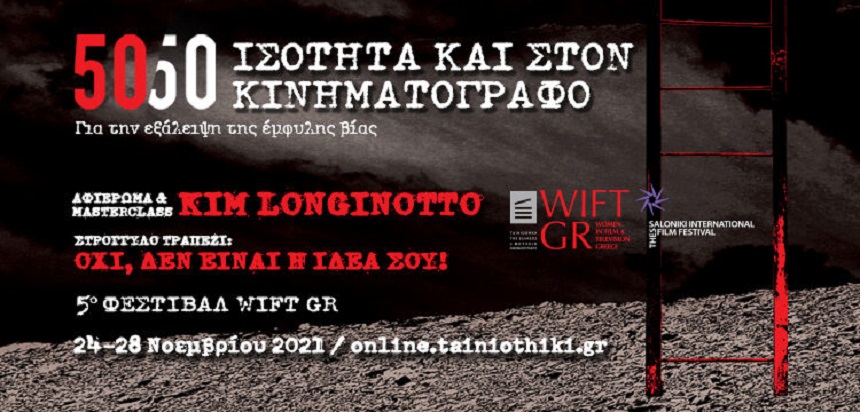 Οι Γυναίκες στον Κινηματογράφο και στην Τηλεόραση – Ελλάδα (WIFT GR) και η Ταινιοθήκη της Ελλάδος παρουσιάζουν το 5ο ΦΕΣΤΙΒΑΛ WIFT GR 50/50 ΙΣΟΤΗΤΑ ΚΑΙ ΣΤΟΝ ΚΙΝΗΜΑΤΟΓΡΑΦΟ, το οποίο πραγματοποιείται φέτος σε συνεργασία με το Φεστιβάλ Κινηματογράφου Θεσσαλονίκης, υπό την αιγίδα και με την υποστήριξη του Υπουργείου Πολιτισμού και Αθλητισμού, και υπό την αιγίδα της Γενικής Γραμματείας Δημογραφικής και Οικογενειακής Πολιτικής και Ισότητας των Φύλων, στις 24-28 Νοεμβρίου 2021, με την ευκαιρία της Παγκόσμιας Ημέρας Εξάλειψης της Βίας κατά των Γυναικών (25 Νοεμβρίου).